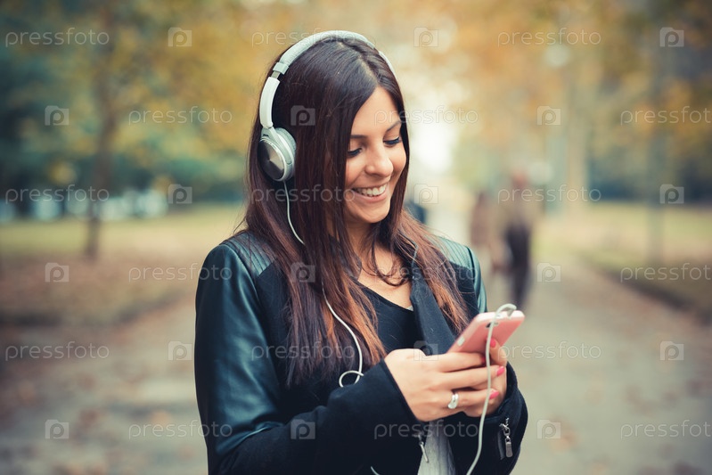 Молодая красивая брюнетка в парке