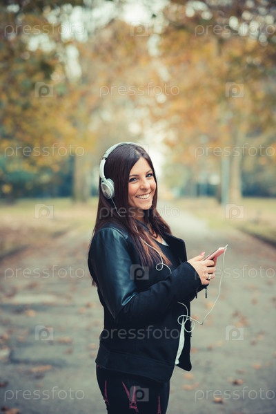 Молодая красивая брюнетка в парке