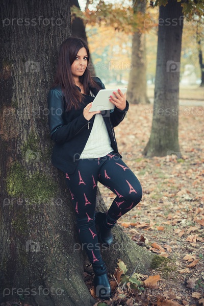 Молодая красивая брюнетка в парке