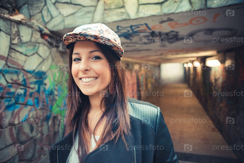 Молодая красивая брюнетка в парке