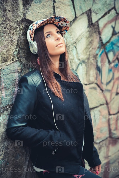 Молодая красивая брюнетка в парке