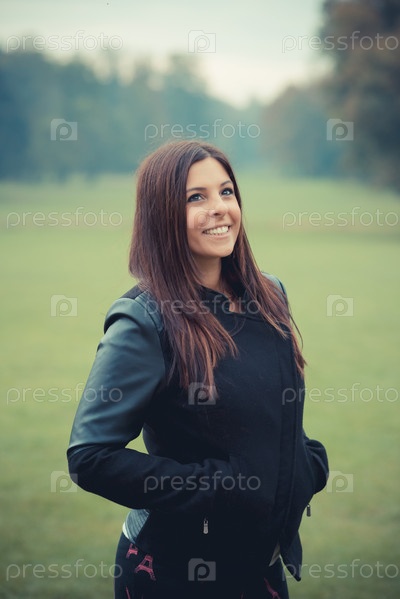 Молодая красивая брюнетка в парке