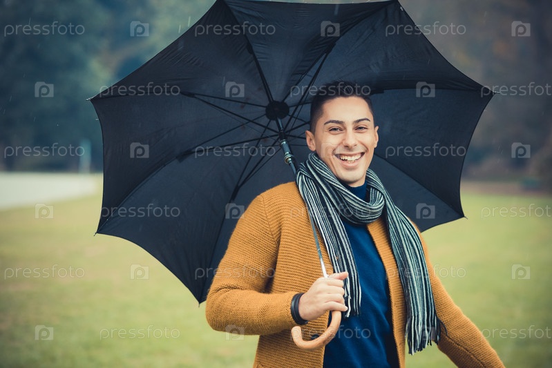 Молодой красивый мужчина в осеннем парке