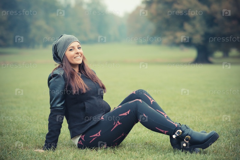 Молодая красивая брюнетка в парке