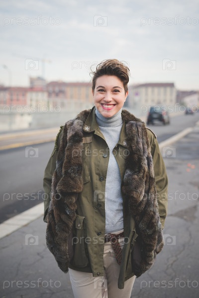 Молодая женщина с короткой стрижкой