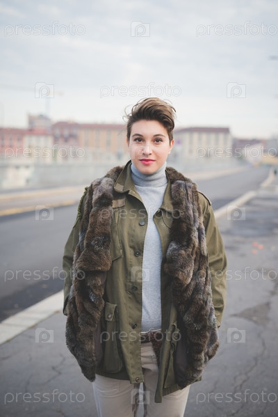 Молодая женщина с короткой стрижкой