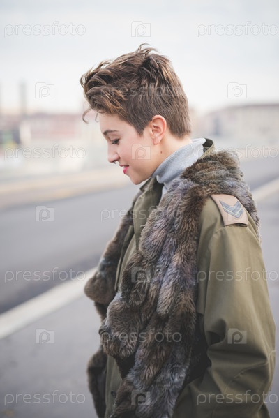 Молодая женщина с короткой стрижкой