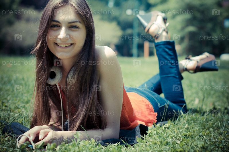 Красивая молодая женщина в парке