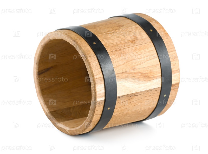 Деревянная бочка, изолированная на белом фоне