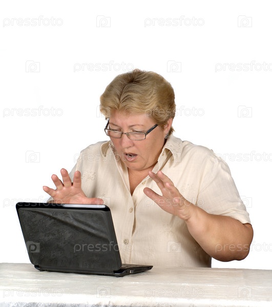 Пожилая женщина работает на ноутбуке