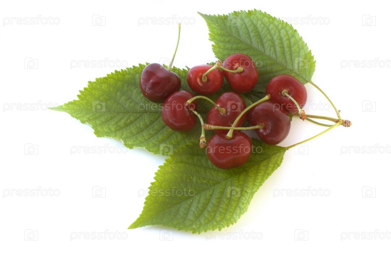 Спелая вишня с листьями