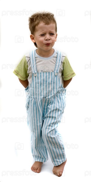 Маленький мальчик строит рожицы, белый фон