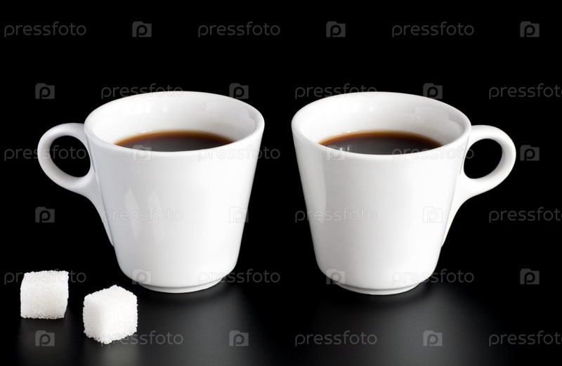 Пять белых чашек кофе изолированы на черном фоне
