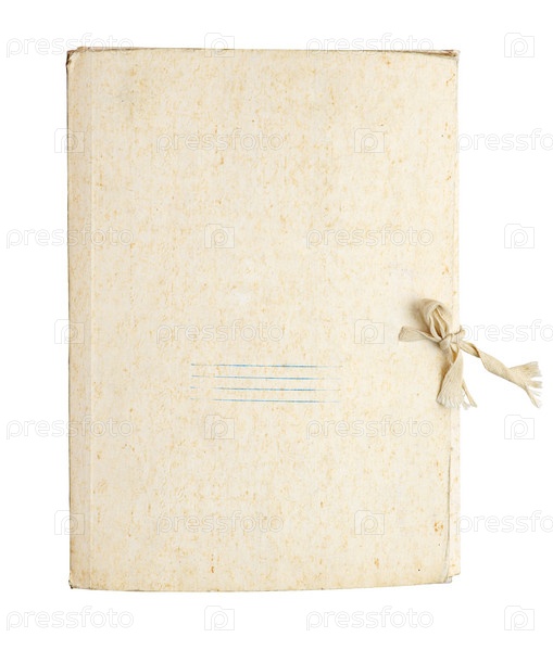 Старая папка для бумаг с завязками на белом