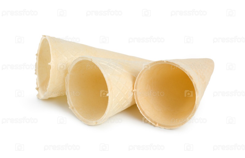 Вафельные конусы для мороженого, изолированные на белом фоне