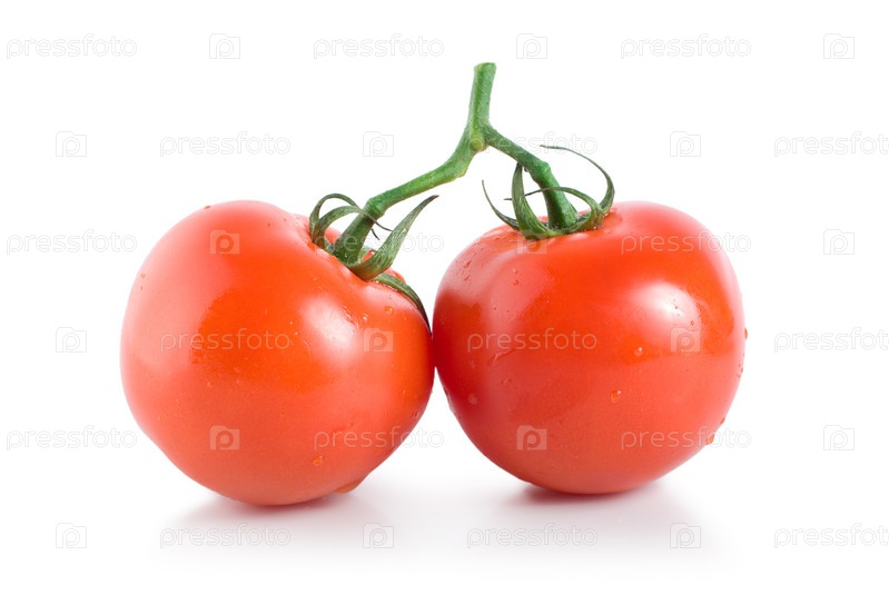 Два спелых помидора на белом фоне