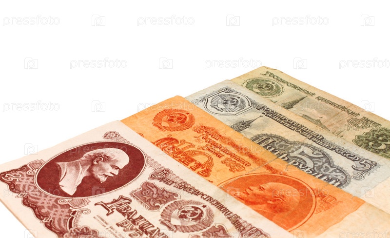 Старые советские банкноты на белом фоне