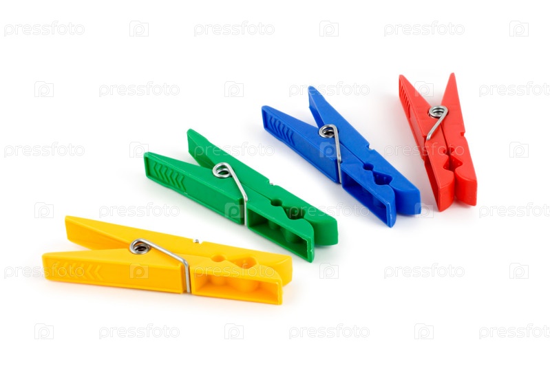 Разноцветные прищепки на белом фоне
