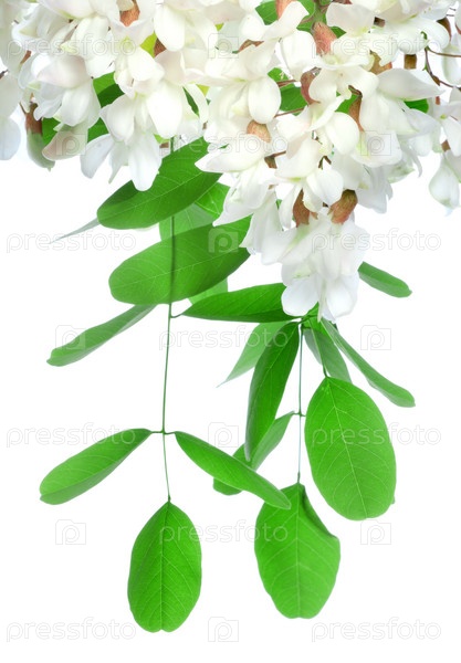 Цветущая акация, изолирована на белом фоне