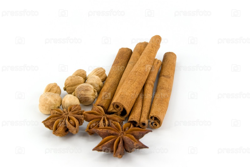 Различные специи на белом фоне
