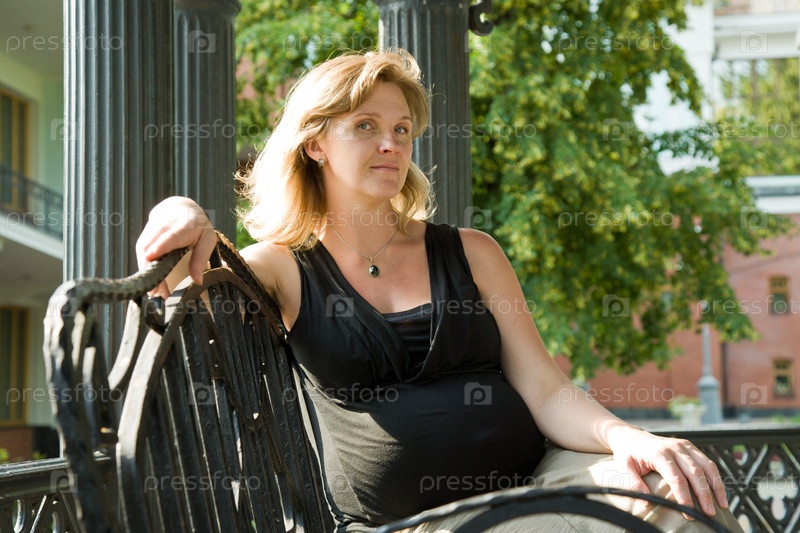 Светловолосая женщина на скамейке в парке