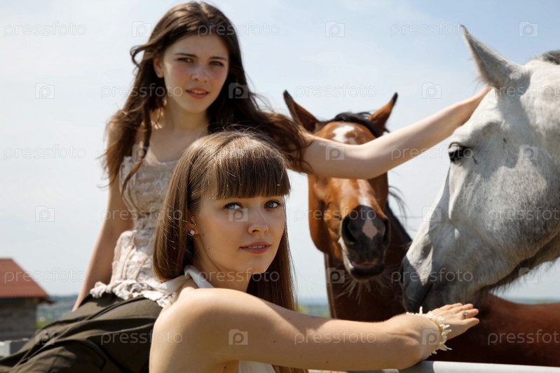 Портрет привлекательных девушек с лошадьми