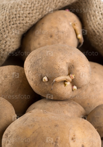Сырой картофель в старом мешке