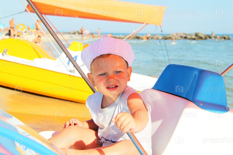 Маленький мальчик в лодке на море