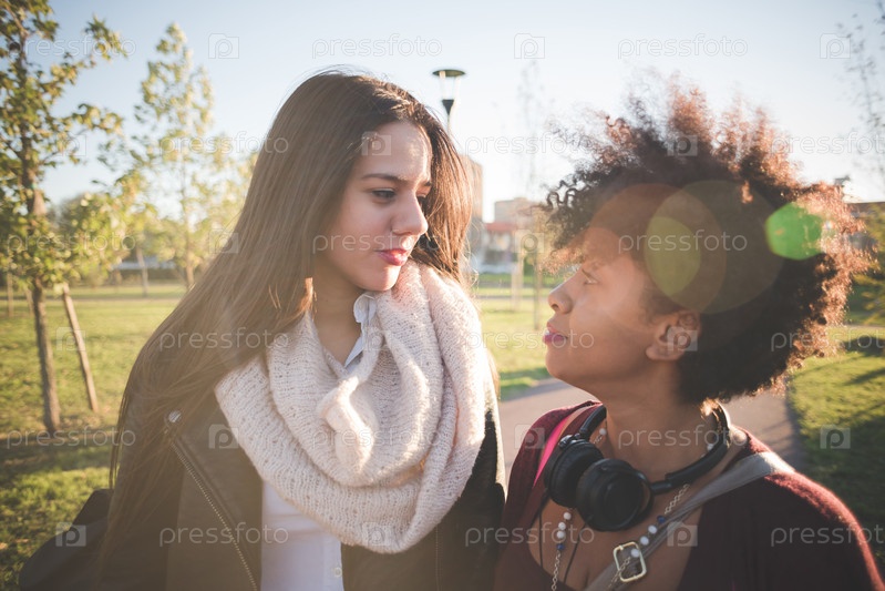 Две молодые женщины в городе