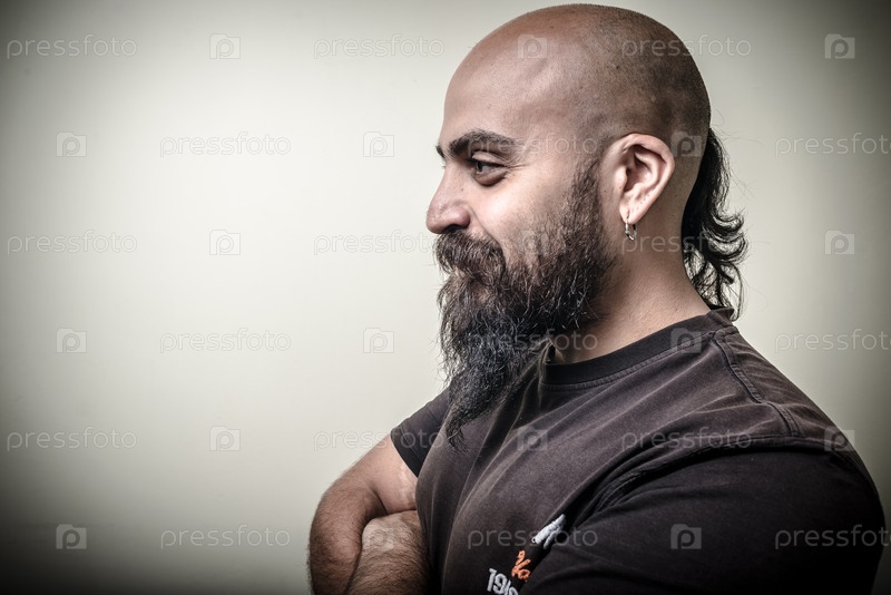 Профиль бородатого мужчины на сером фоне