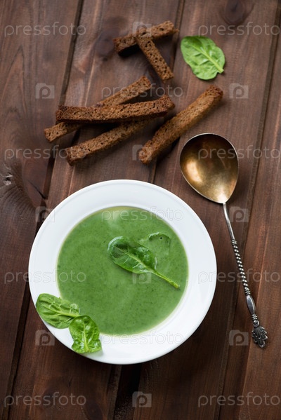 Суп из шпината с гренками