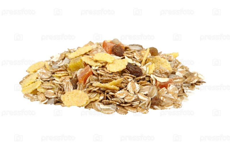 Горстка мюсли, изолирована на белом фоне
