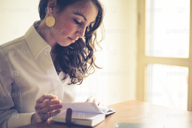 Красивая женщина с записной книжкой