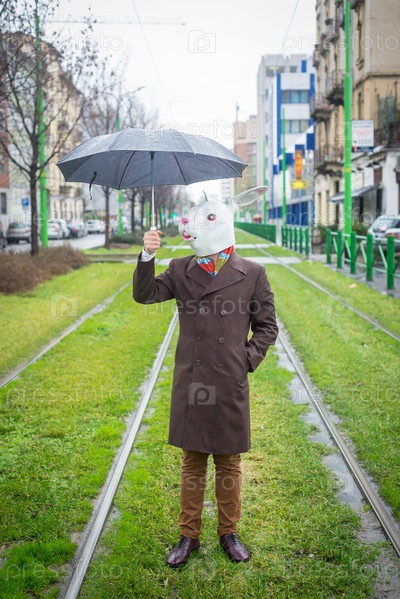 Мужчина в маске кролика