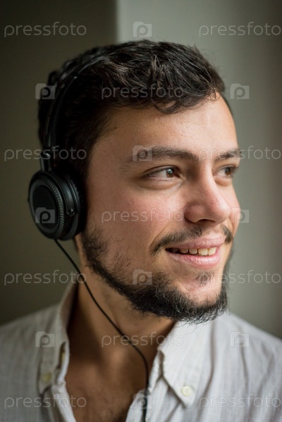 Молодой стильный человек слушает музыку