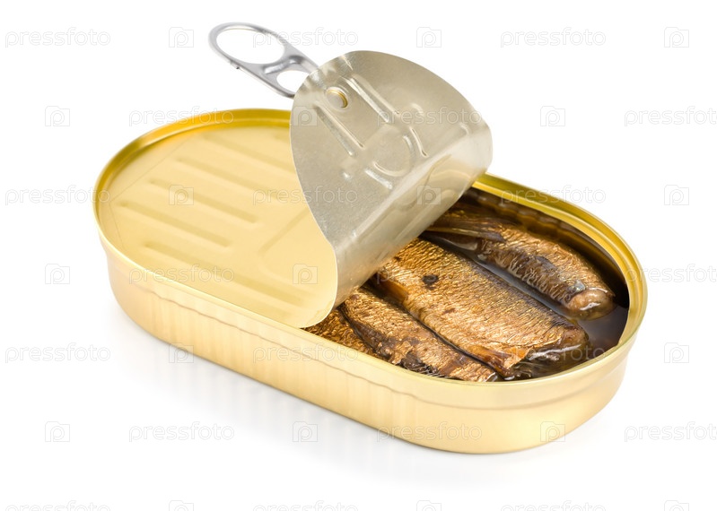 Консервированные сардины на белом фоне