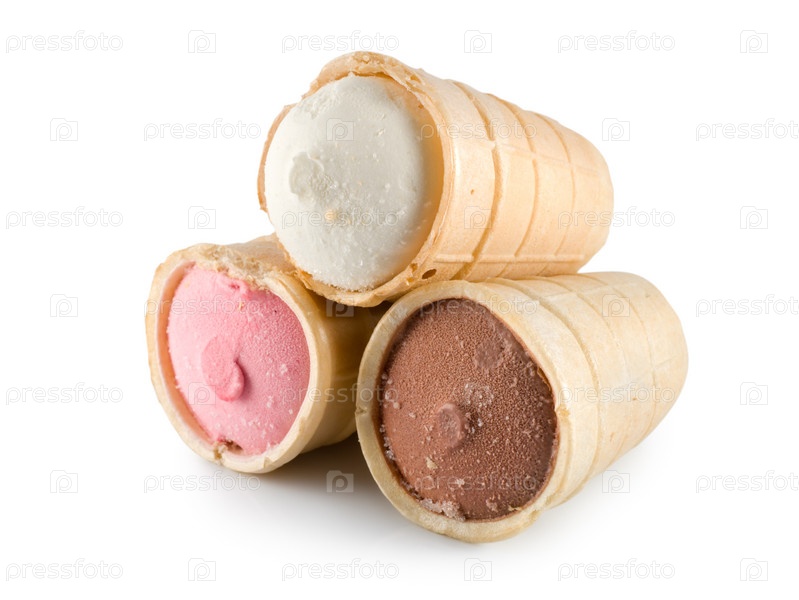 Три вида мороженого в стаканчиках: шоколадное, ванильное и клубничное