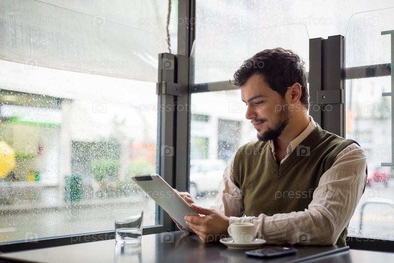 Молодой стильный мужчина в баре