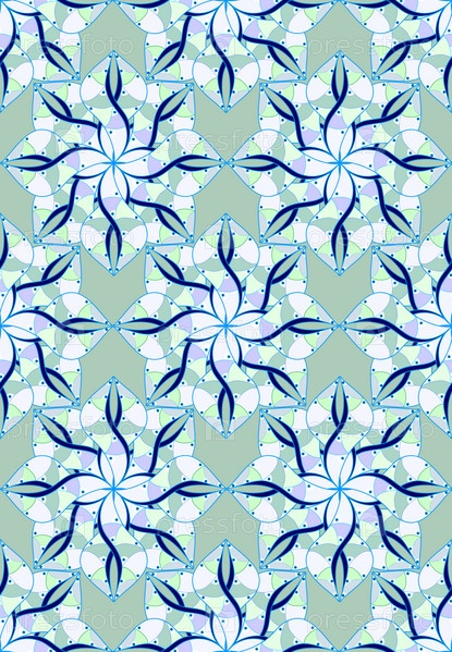 Бесшовный фон с декоративными цветами и листьями