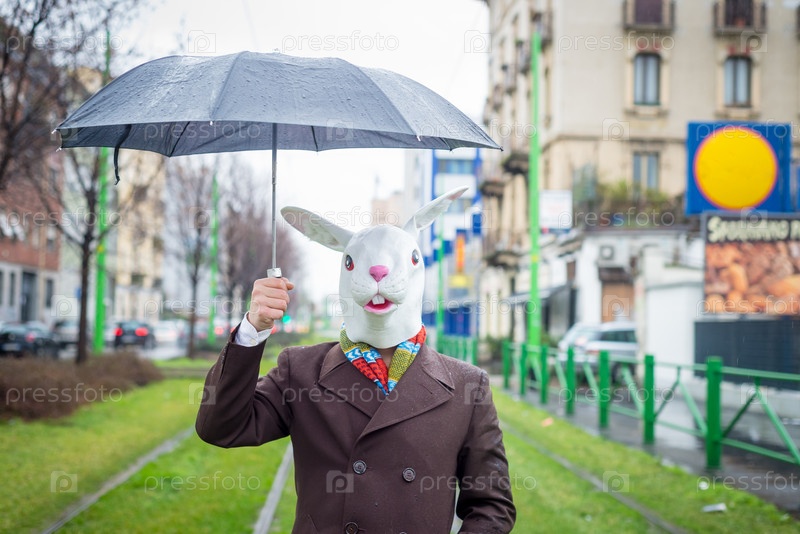 Мужчина в маске кролика