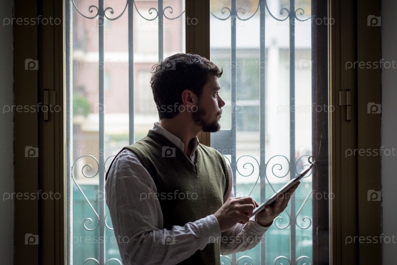Стильный молодой человек с планшетом