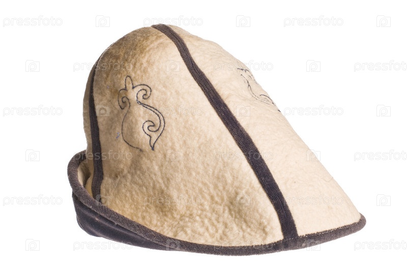 Войлочная шапка на белом фоне. Азия, степь, казахи
