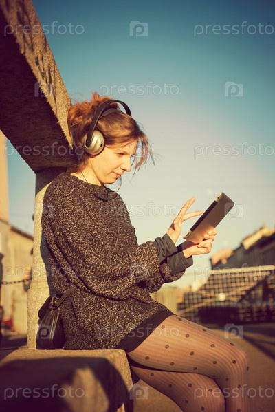 Блондинка слушает музыку
