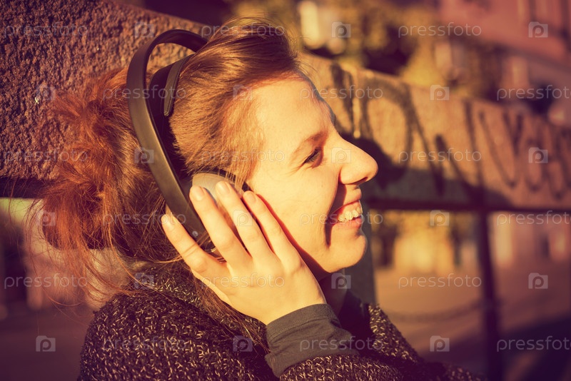 Блондинка слушает музыку