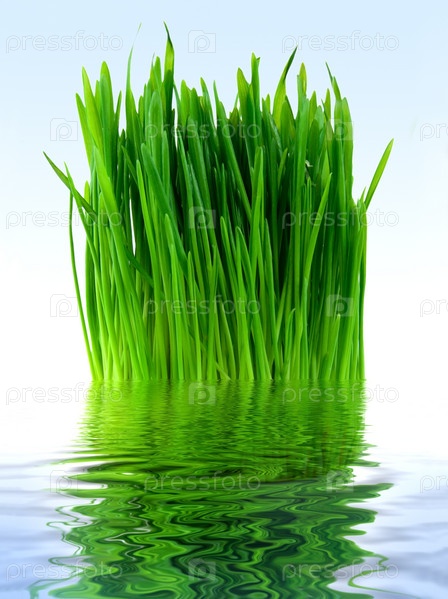 Зеленая трава в голубой воде