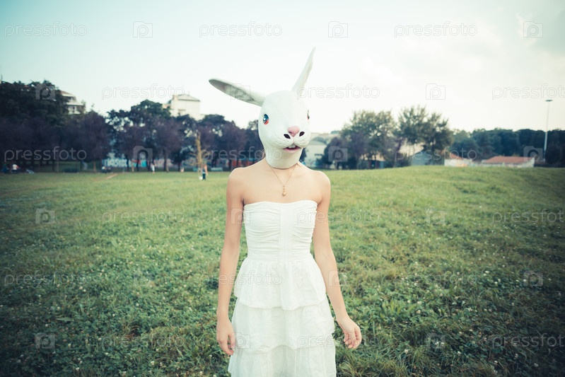 Женщина в маске кролика