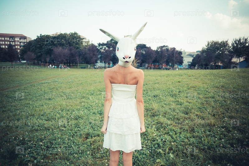 Женщина в маске кролика