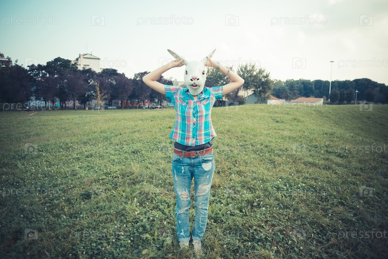 Женщина в маске кролика