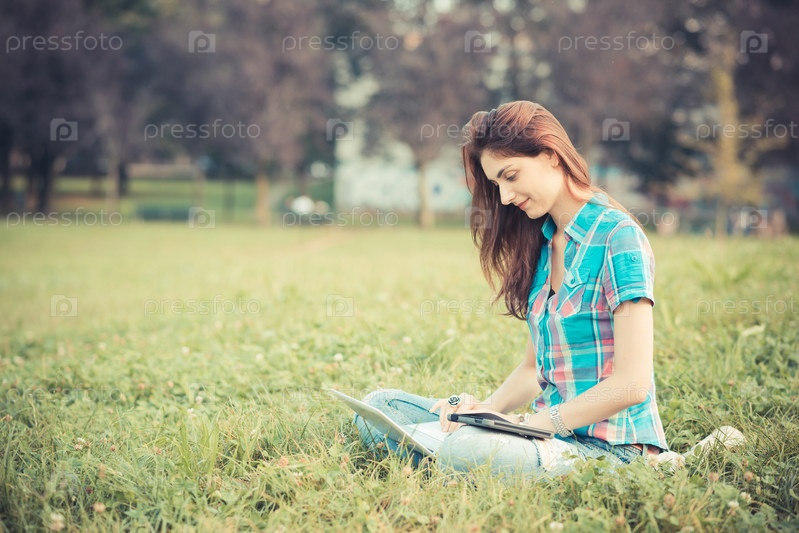Женщина с ноутбуком и планшетом