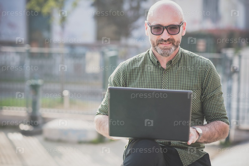 Мужчина среднего возраста с ноутбуком